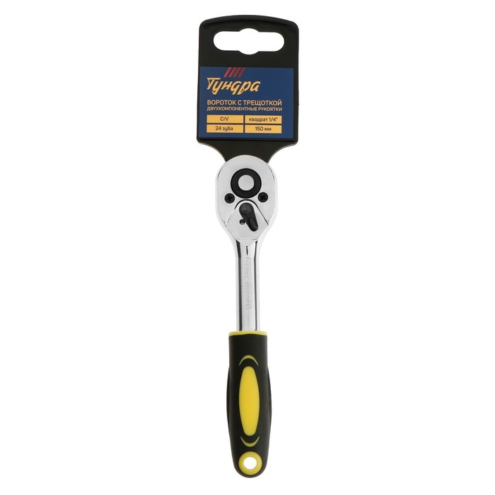 Вороток с трещоткой ТУНДРА, CrV, квадрат 1/4", 2К рукоятка, 24 зуба, 150 мм