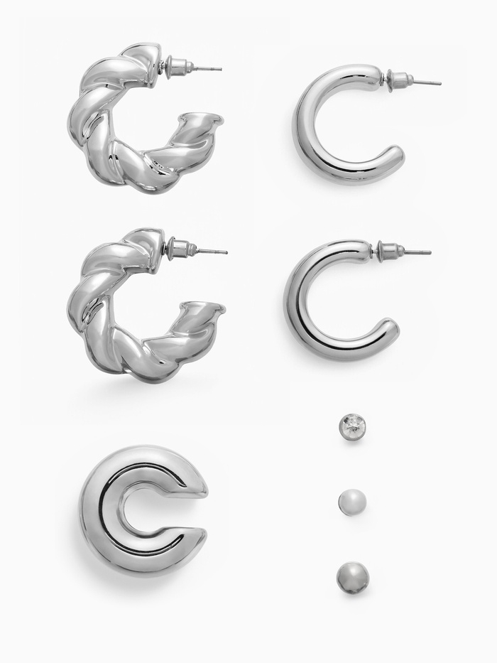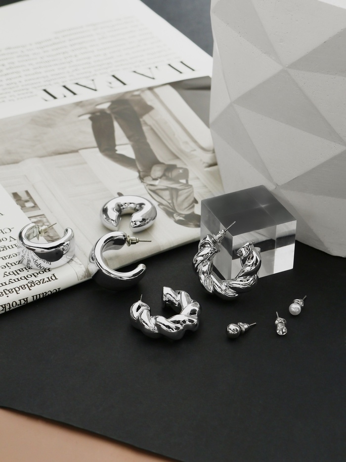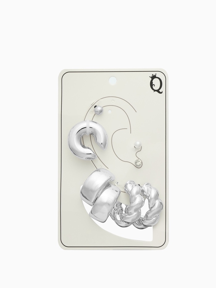 Набор серьги и каффы 8 шт «Бублик» переплетение, цвет серебро