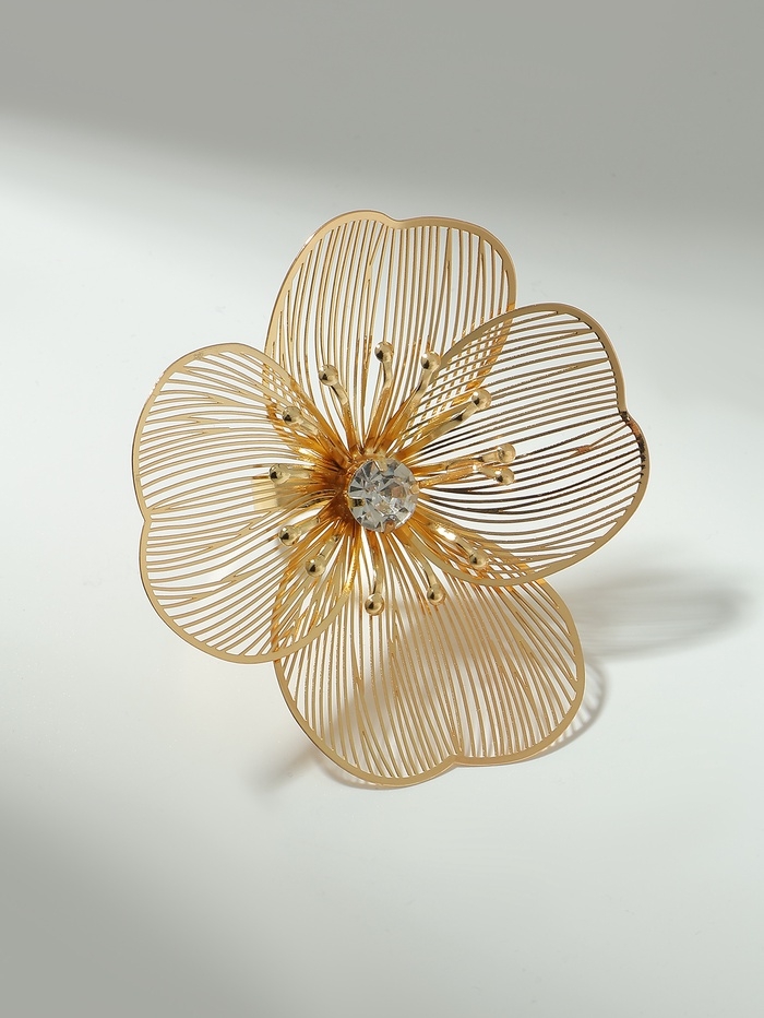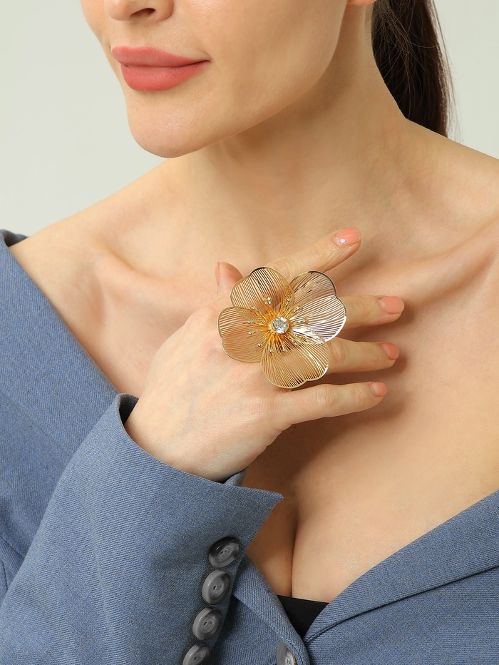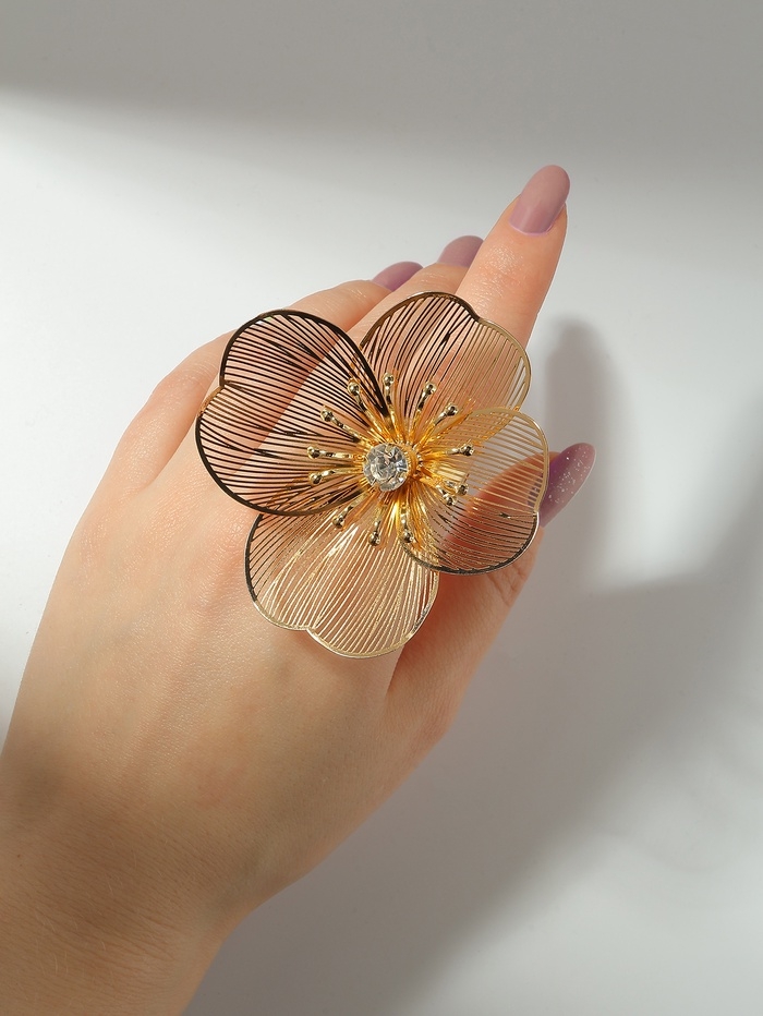 Кольцо «Цветок» стразинка, безразмерное, цвет золото