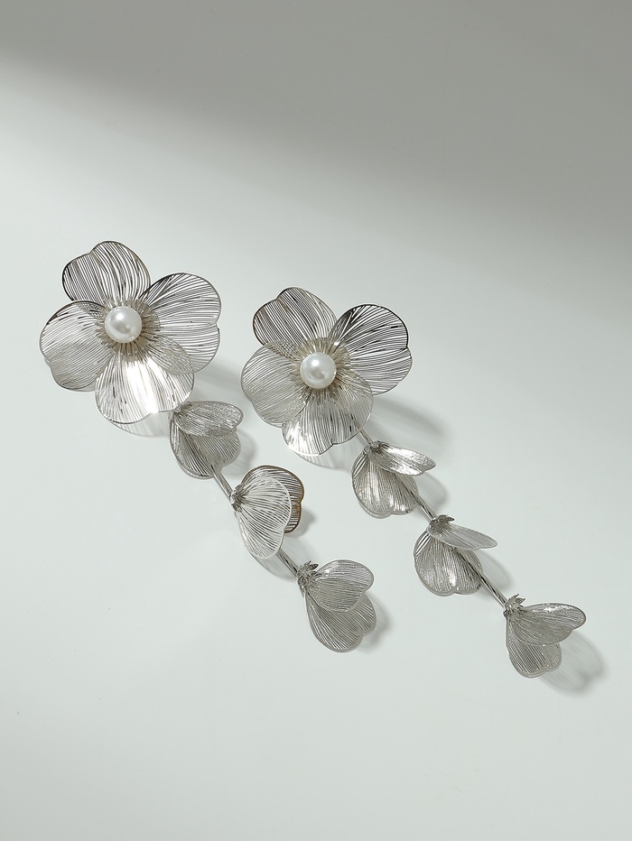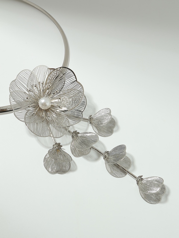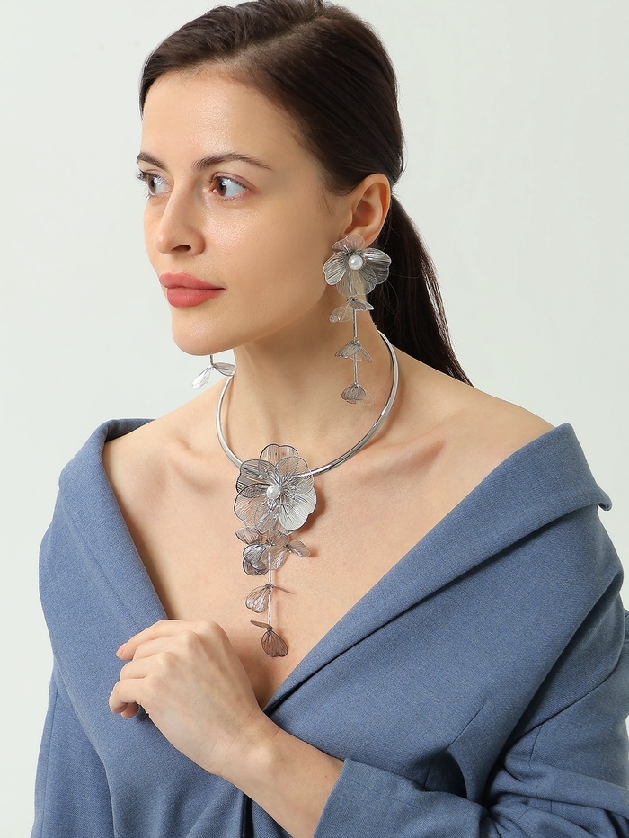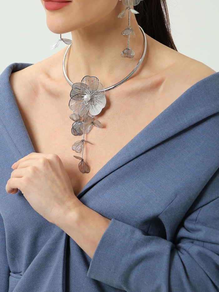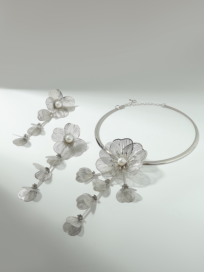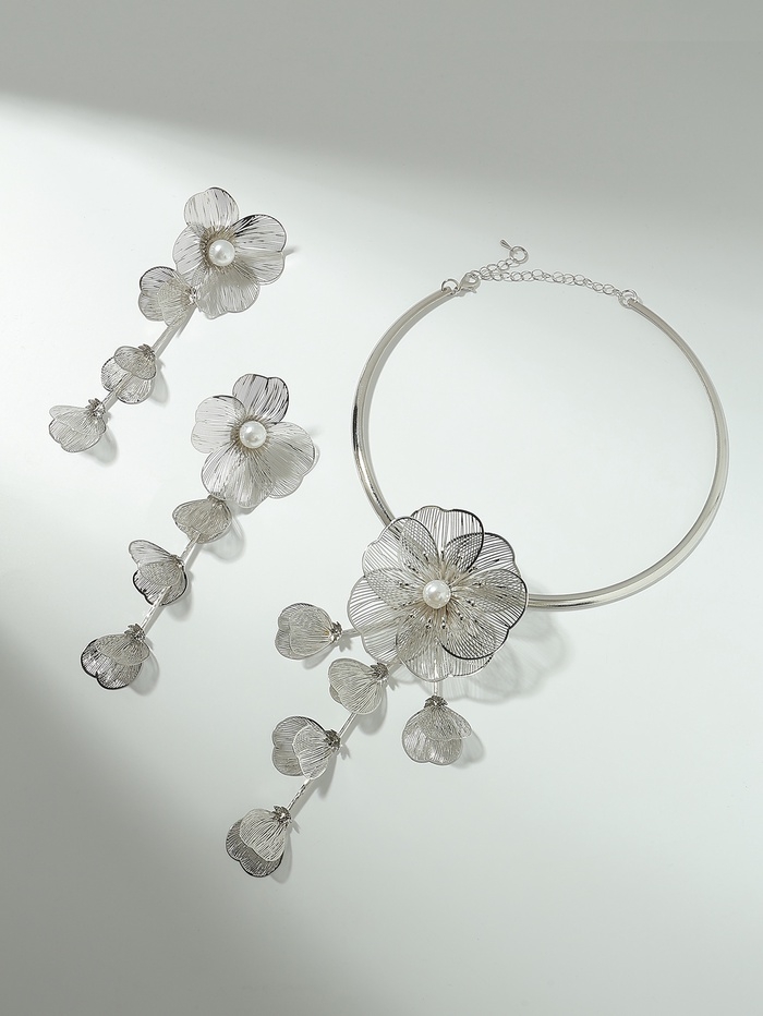 Набор 2 предмета: серьги, колье «Шальная императрица» цветок, цвет белый в серебре, 45 см