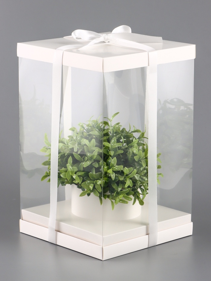 Коробка PVC, для цветов с лентой, 28 х 18 х 18 см, белый