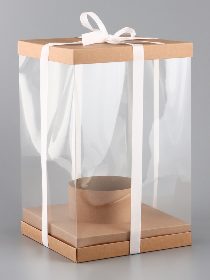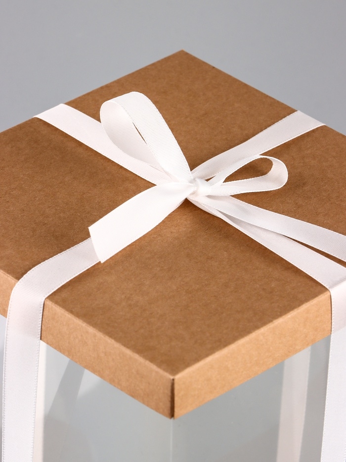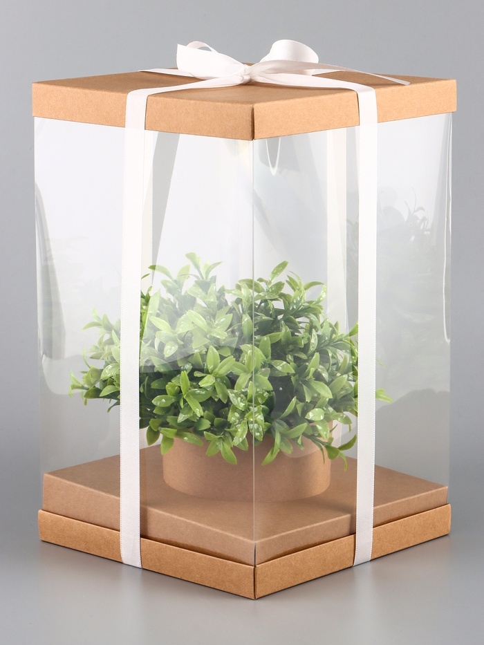 Коробка PVC, для цветов с лентой, 28 х 18 х 18 см, крафт