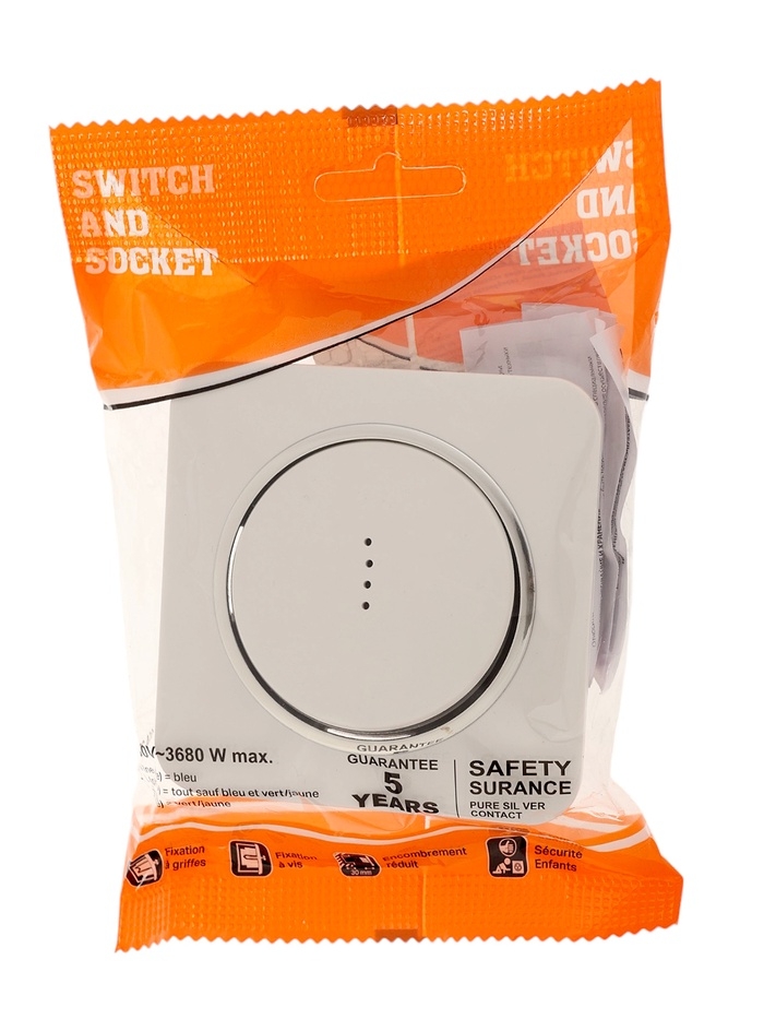 Выключатель, серия "Circular", 10 А, 1 кл., с подсветкой, скрытый, белый, серебристая рамка 107461