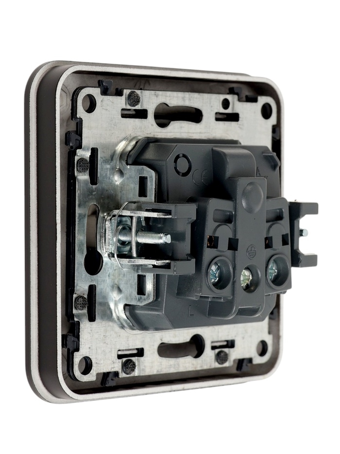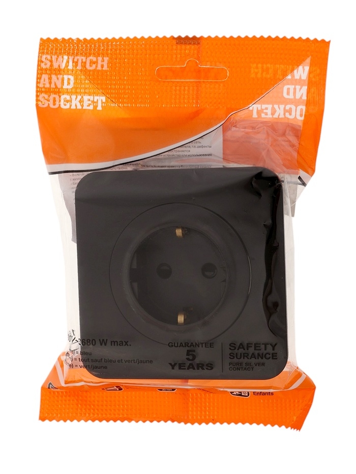 Розетка одноместная, серия "Circular", 16 А, скрытая, с з/к, черная