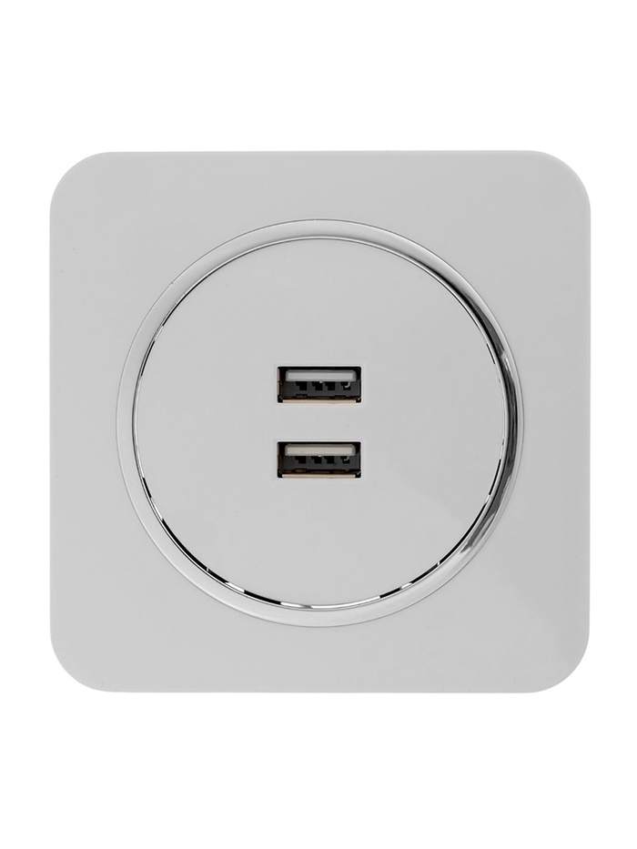 Розетка с 2 USB-A разъёмами, 2.1А, 5В, серия "Circular", 10 А, скрытая, серебристая рамка