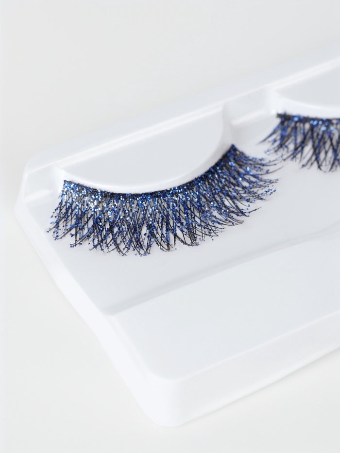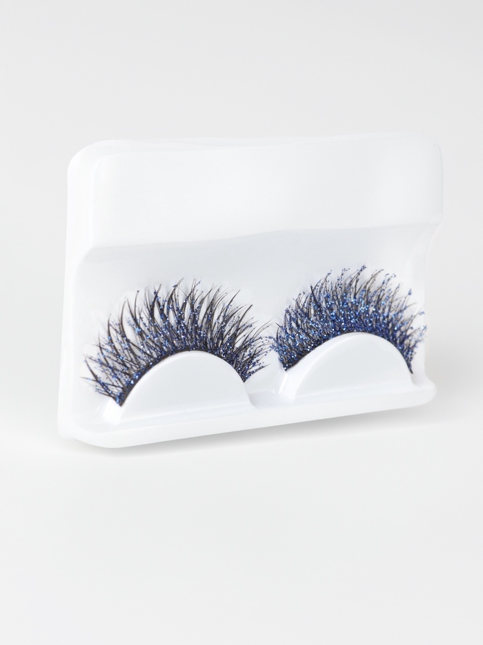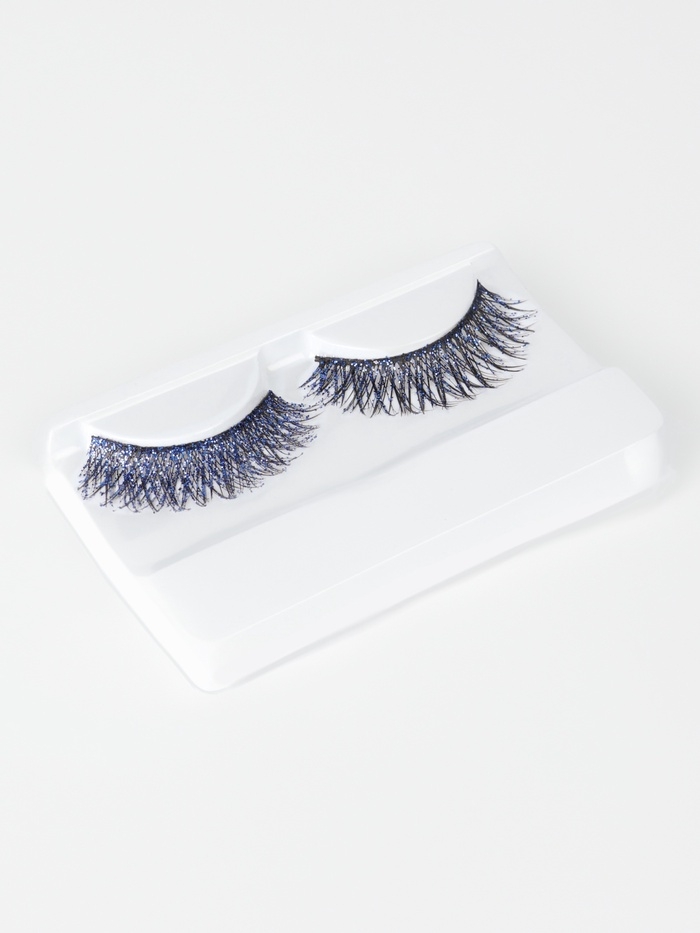 Ресницы накладные блестящие голубые пластик к/короб QF
