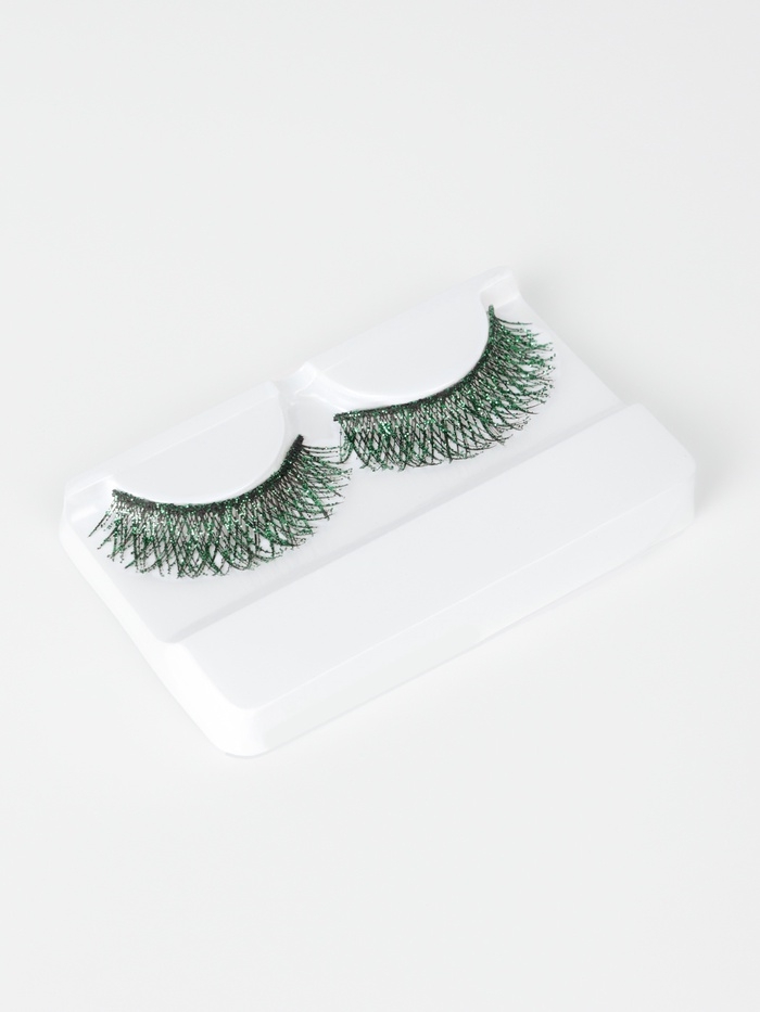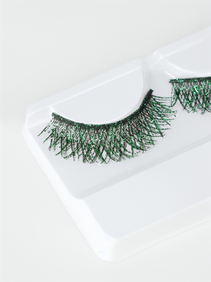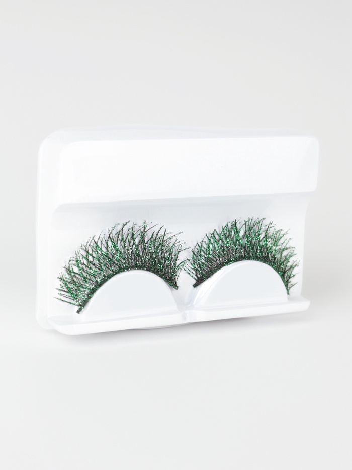 Ресницы накладные блестящие зеленые пластик к/короб QF