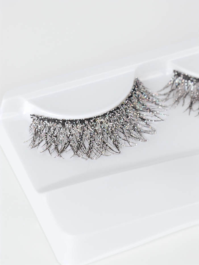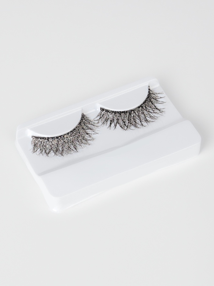 Ресницы накладные блестящие серебряные пластик к/короб QF