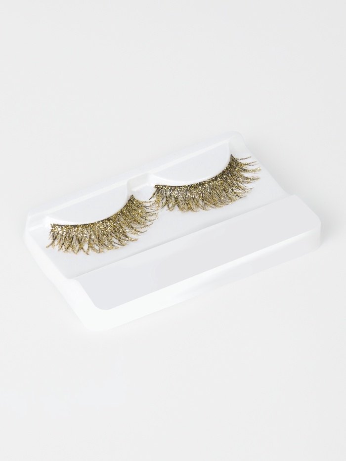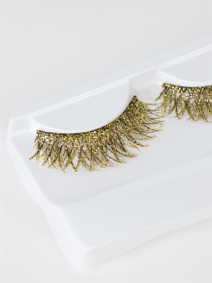 Ресницы накладные блестящие золотые пластик к/короб QF