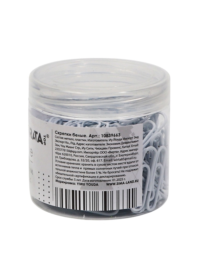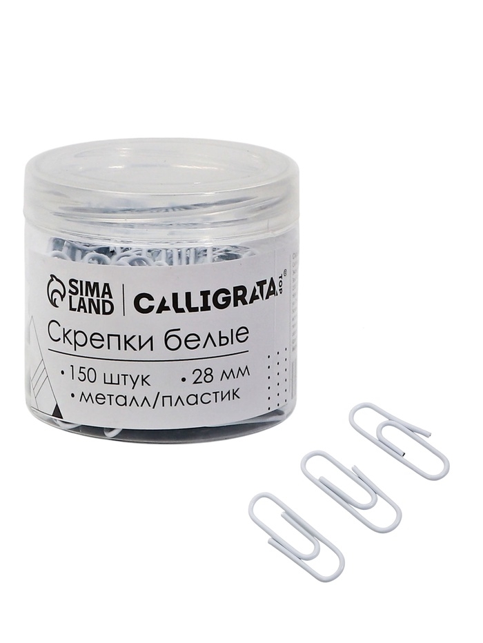 Скрепки 28мм белые в пластиковой тубе 150 штук, TOP Calligrata