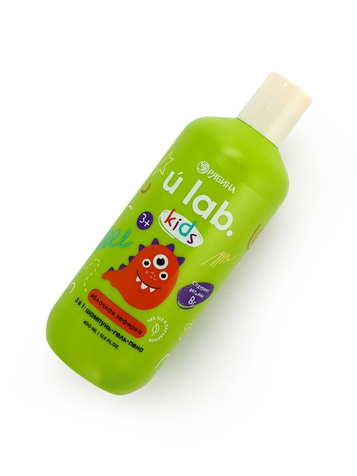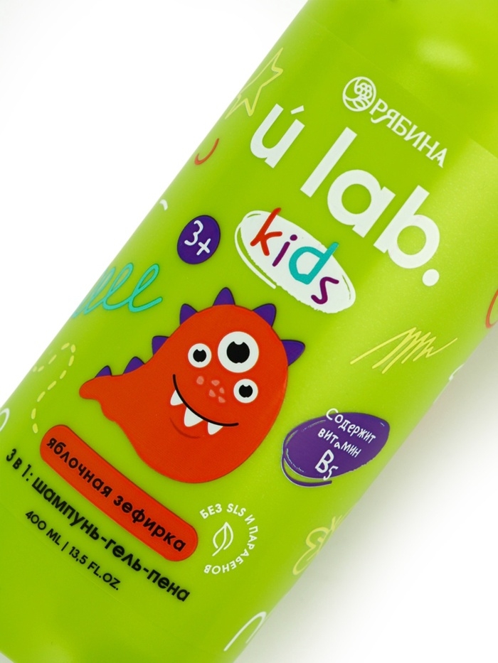 Детский шампунь-гель-пена 3в1 «Монстрики», 400 мл, аромат сладкая яблочная зефирка, ULAB