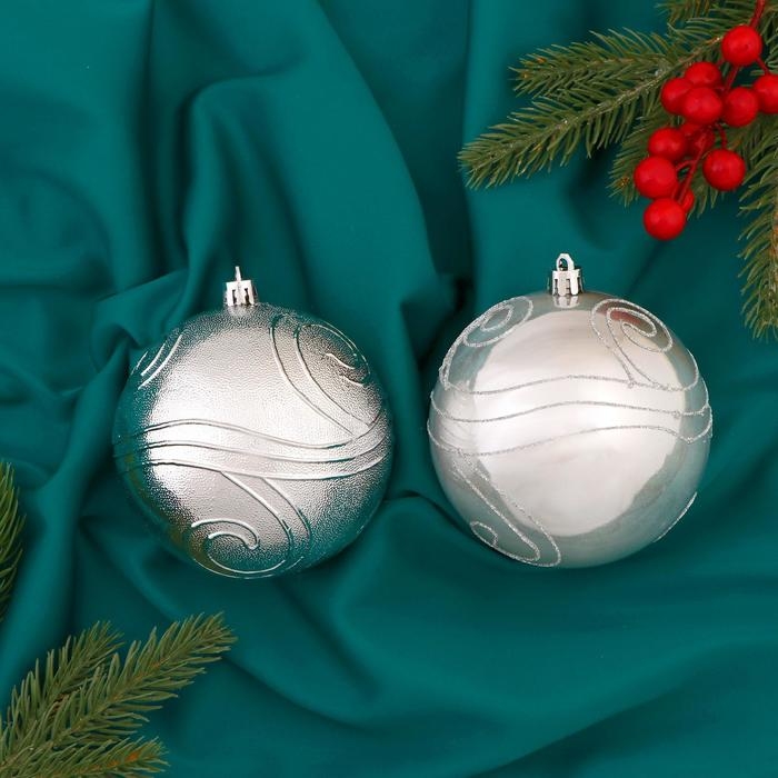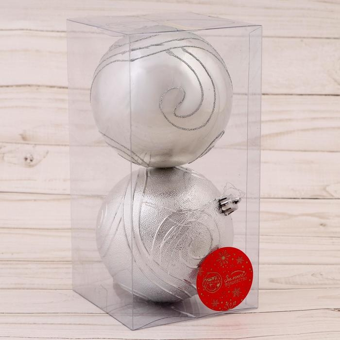 Набор шаров пластик d-10 см, 2 шт "Серебристые линии" серебро