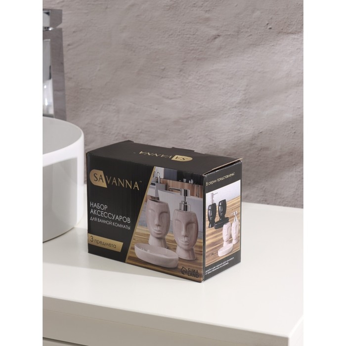 Набор аксессуаров для ванной комнаты Доляна «Вуду», 3 предмета (мыльница, дозатор для мыла, стакан), цвет молочный