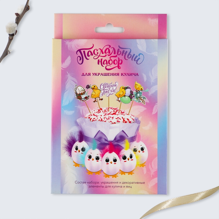 Пасхальный набор для украшения кулича «Нежность» на пасху, 18,5 х 16 х 1 см