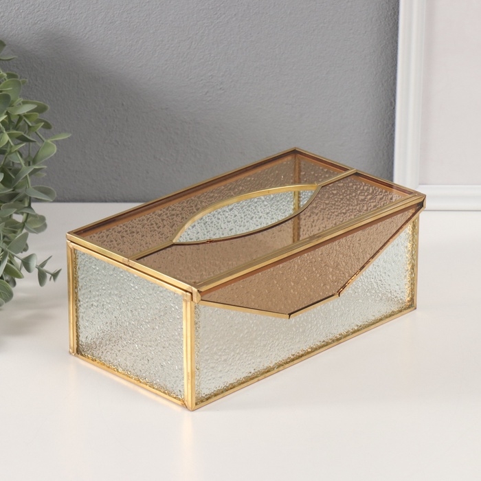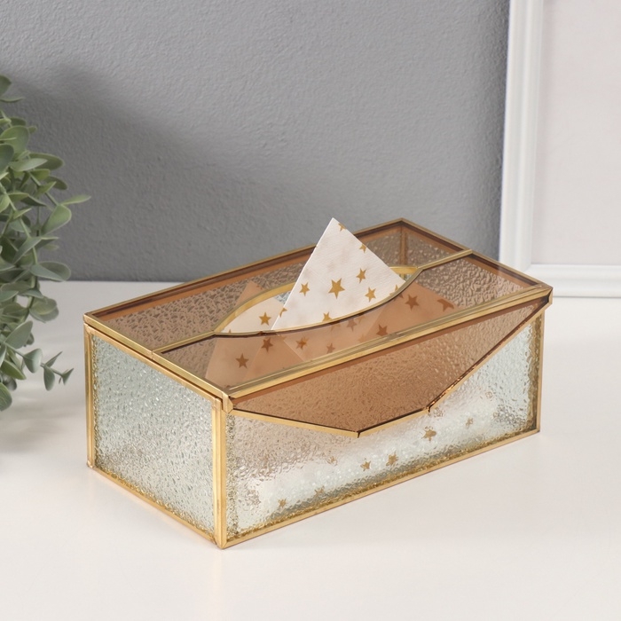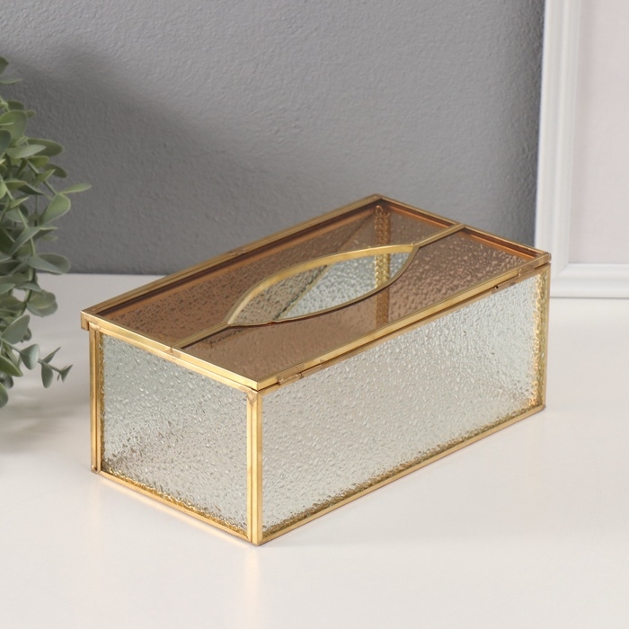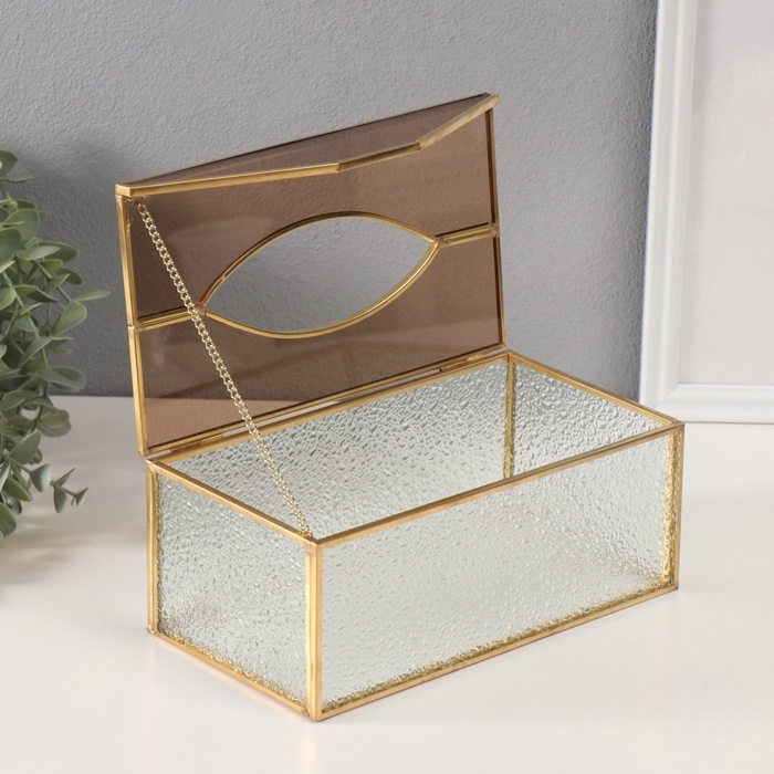 Шкатулка для украшений «Салфетница», стекло с металлическим каркасом, прозрачная рябь, 12.7×22.5×9 см