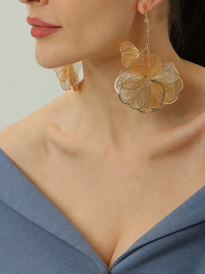 Серьги металл «Цветок» веточка, цвет золото