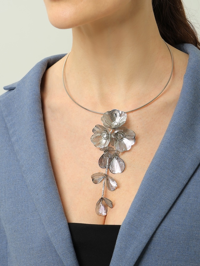 Колье «Цветок» стразинка, цвет серебро, d=15 см