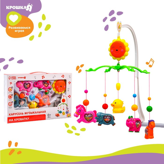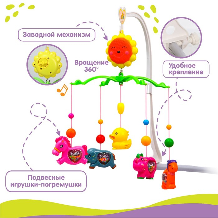 Мобиль музыкальный на кроватку «Солнышко. Зоопарк», заводной, виды МИКС, Крошка Я