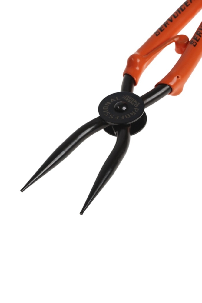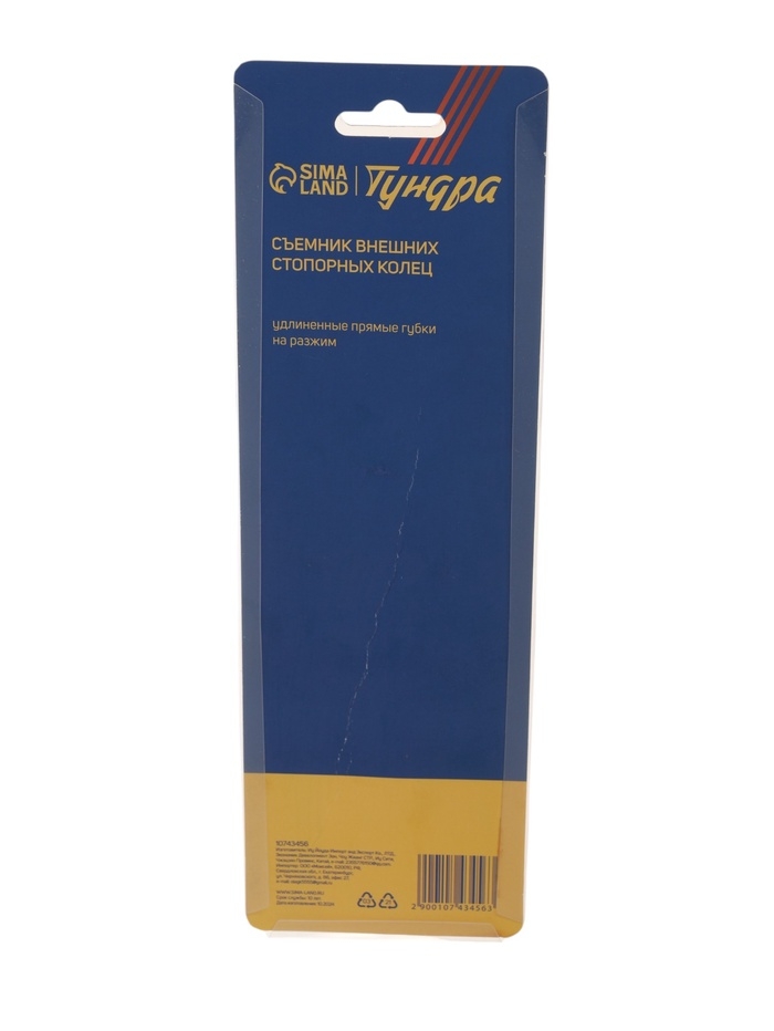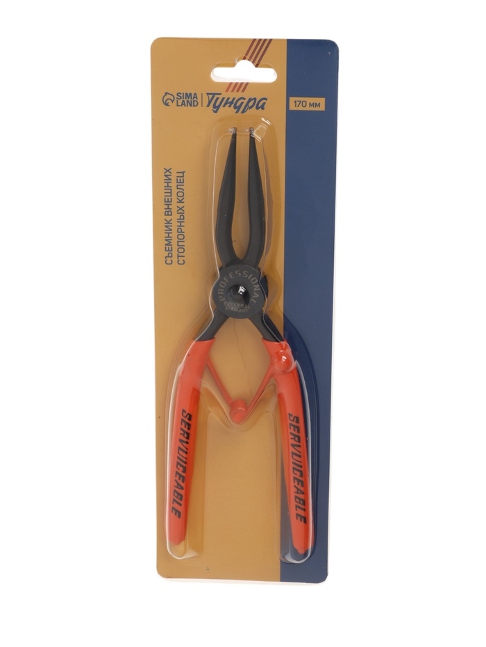 Съемник внешних стопорных колец ТУНДРА, удлиненные прямые губки на разжим, 190 мм