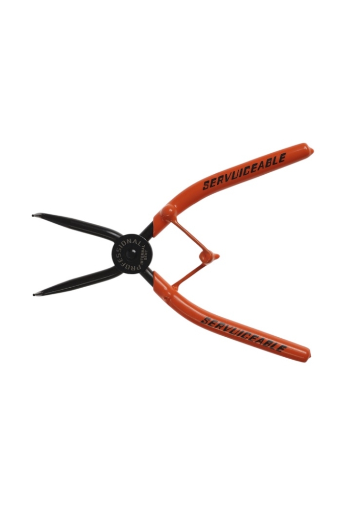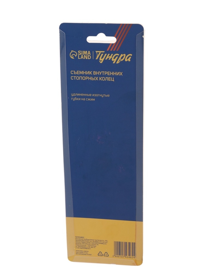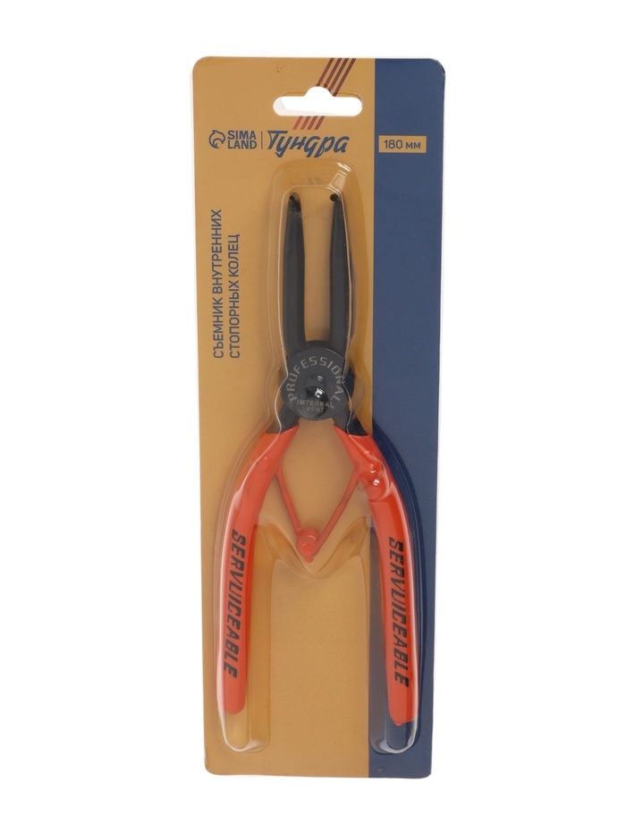 Съемник внутренних стопорных колец ТУНДРА, удлиненные изогнутые губки на сжим, 180 мм