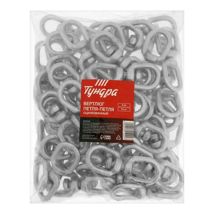 Вертлюг петля-петля ТУНДРА krep, 6 мм, оцинкованный