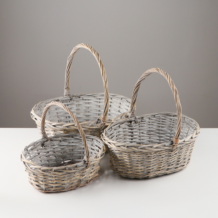 Набор корзин «Плетёнка», 3 шт, 38×30×14/35 см, 32×25×11/27 см, 27×21×10/25 см, ива, микс