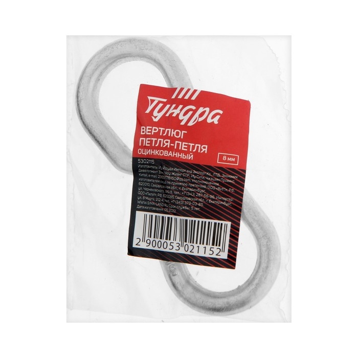 Вертлюг петля-петля ТУНДРА krep, 8 мм, оцинкованный, 1 шт.