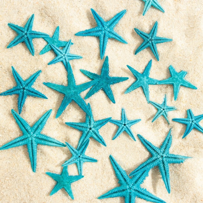 Набор натуральных морских звезд, 1,5 - 2,5 см, 20 шт, синий