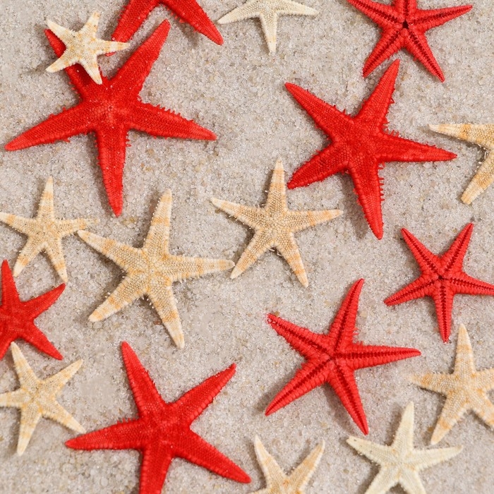 Набор натуральных морских звезд, 1,5 - 2,5 см, 20 шт, красные - белые