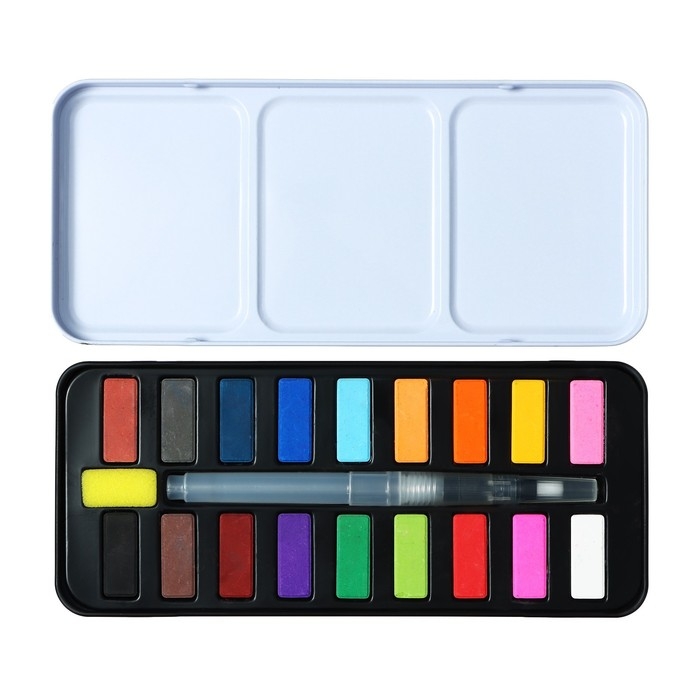 Краски акварельные, в кюветах, с кистью, 18 цветов