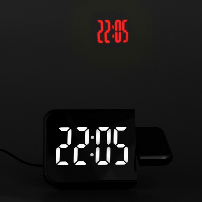 Часы электронные настольные, будильник с проекцией на потолок, календарем, USB, белая индикация 9742