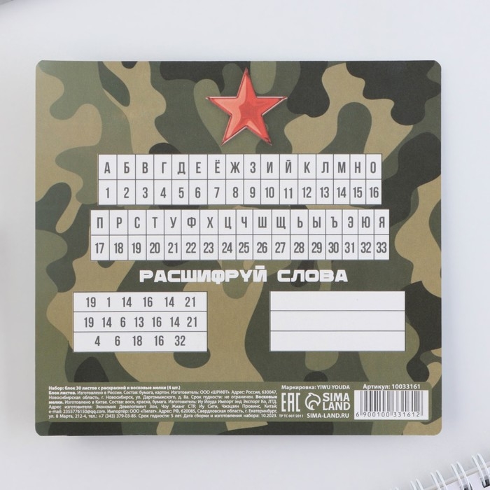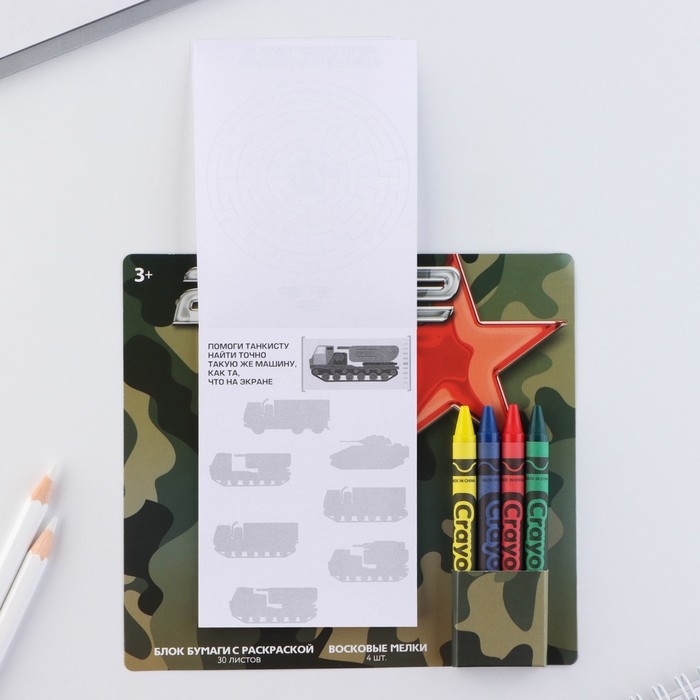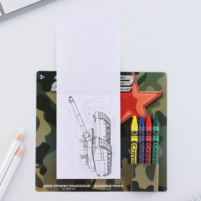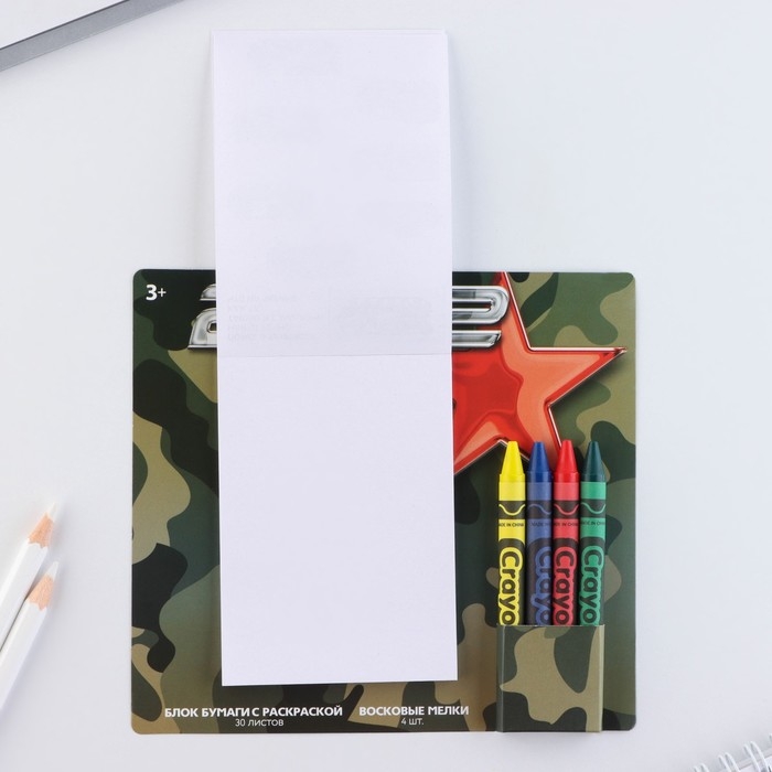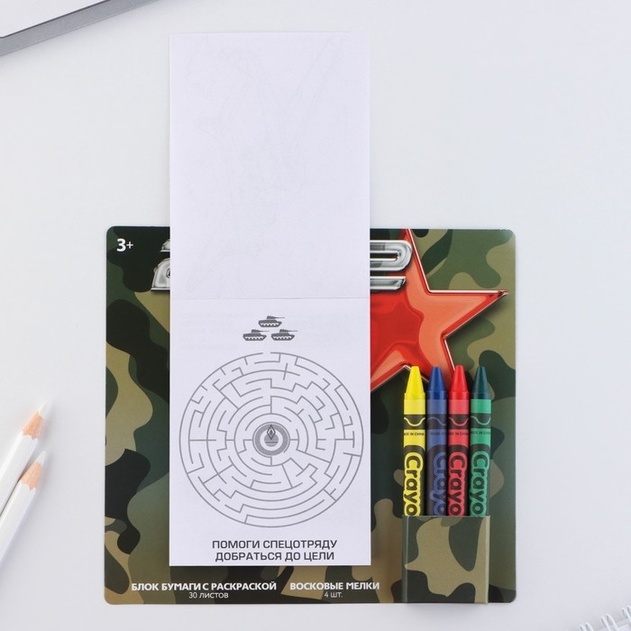 Подарочный набор блок листов с раскраской и восковые мелки «23 февраля»
