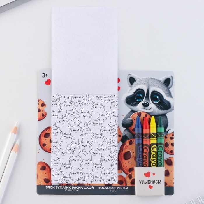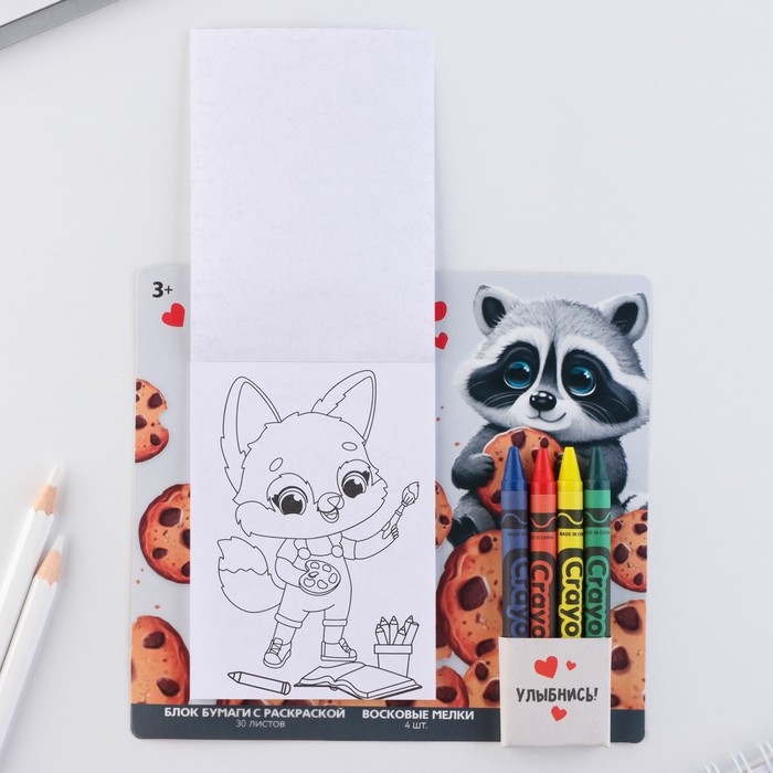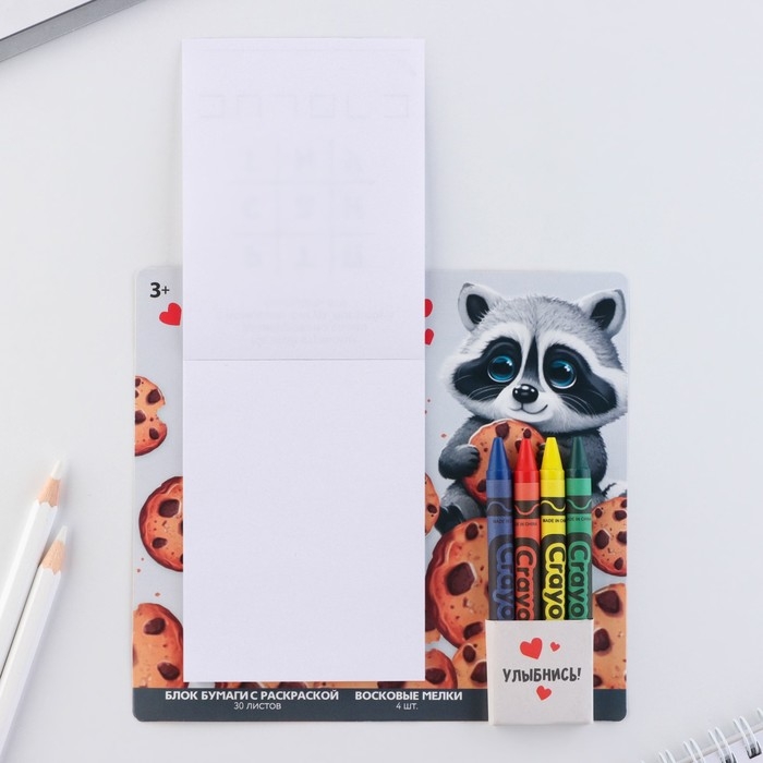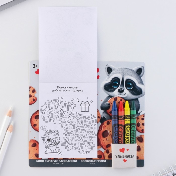 Подарочный набор блок листов с раскраской и восковые мелки «Енотик»