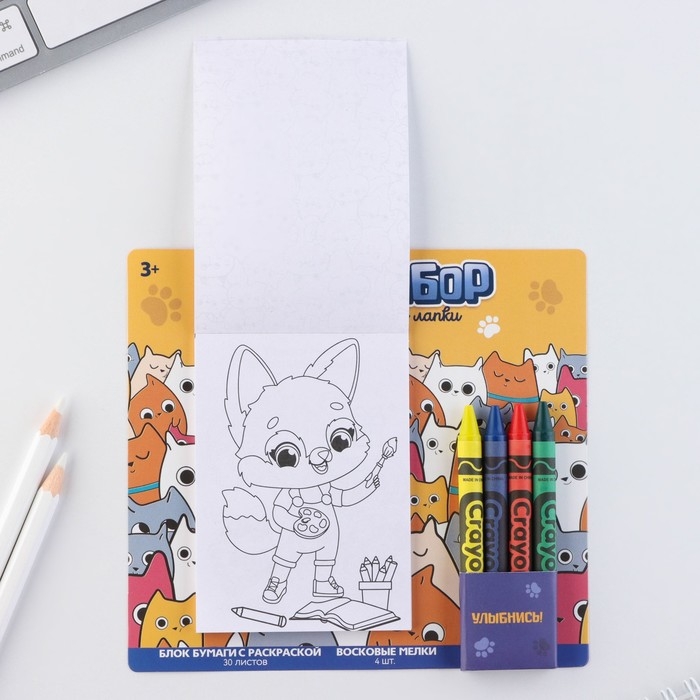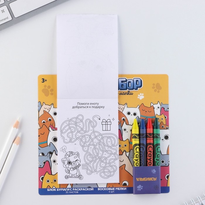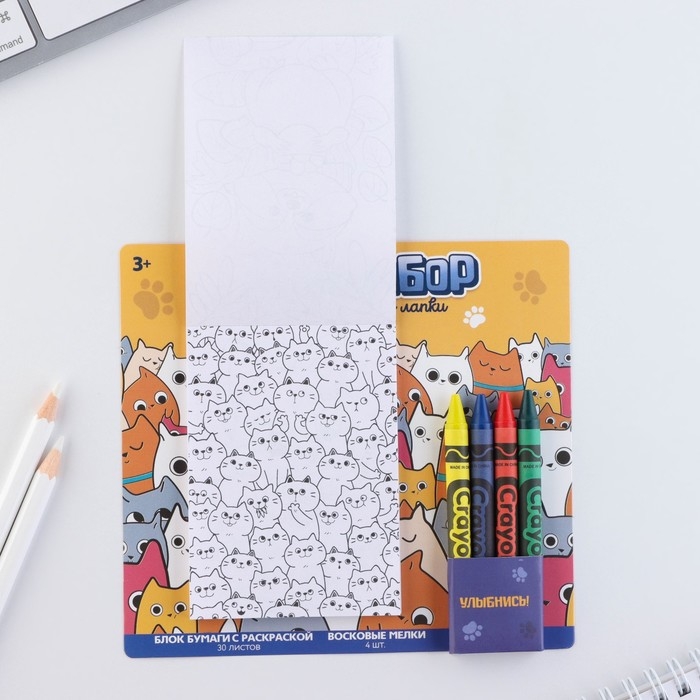 Подарочный набор блок листов с раскраской и восковые мелки «Коты»