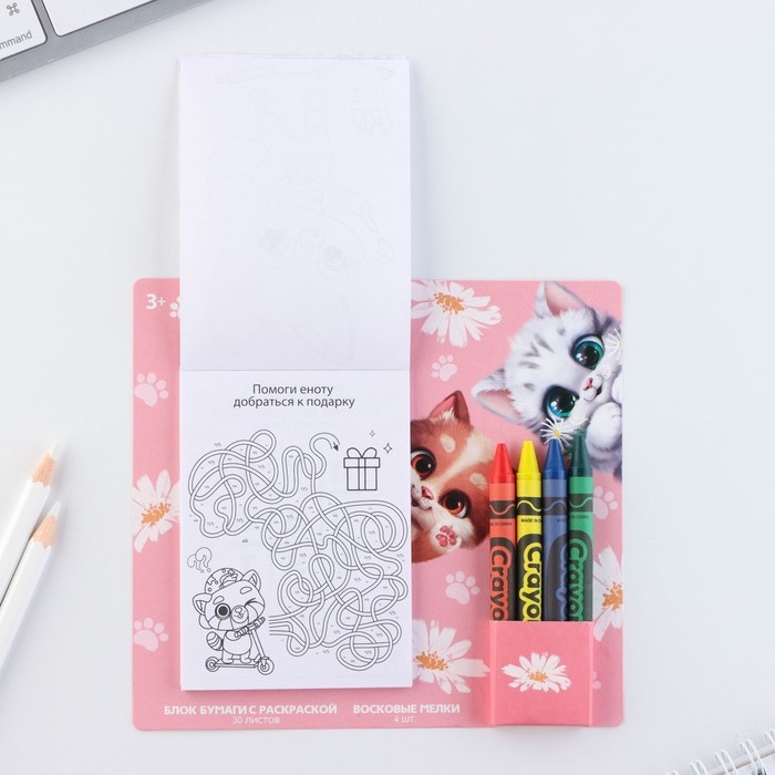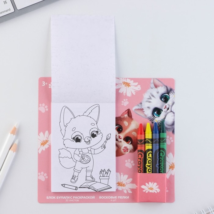 Подарочный набор блок листов с раскраской и восковые мелки «Самая милая»