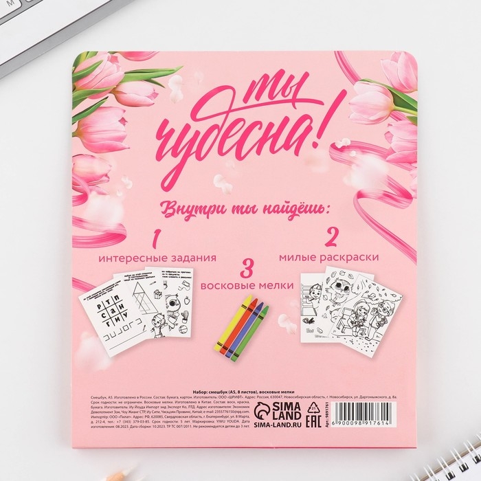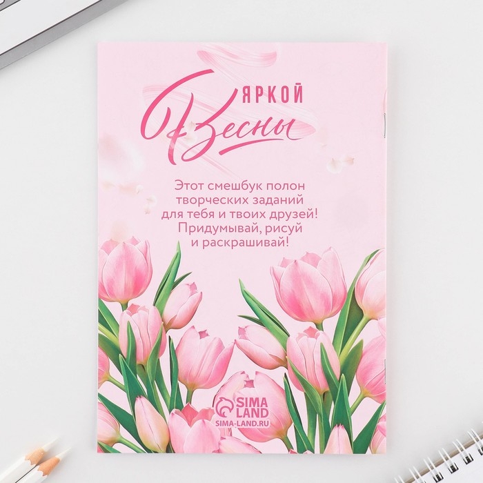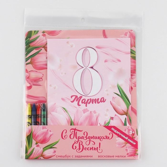Подарочный набор смешбук А5, 8 листов и восковые мелки «8 марта: С праздником весны»