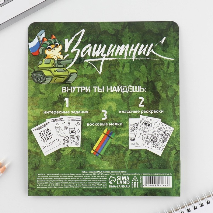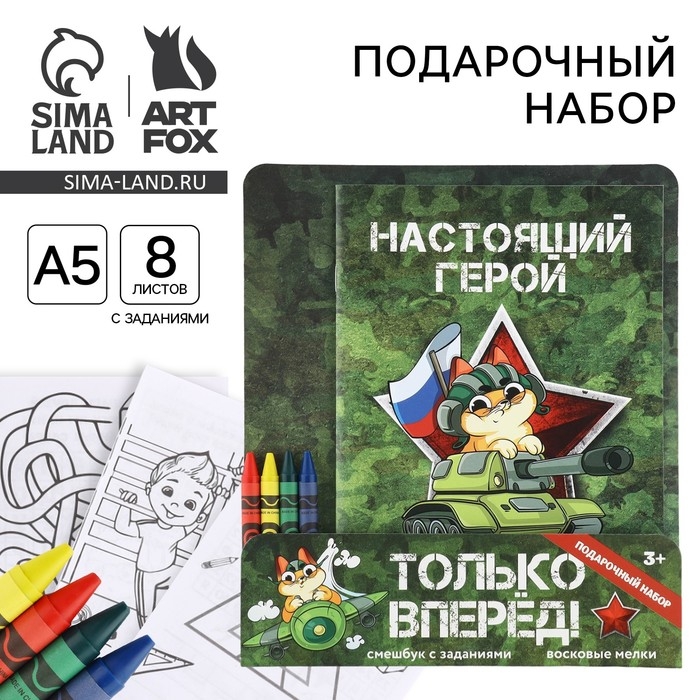 Набор: смешбук А5, 8 листов и восковые мелки «Настоящий герой»