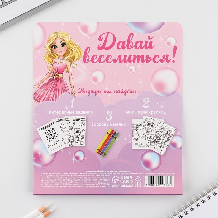 Подарочный набор смешбук А5, 8 листов и восковые мелки «8 марта: Для классных девчонок»