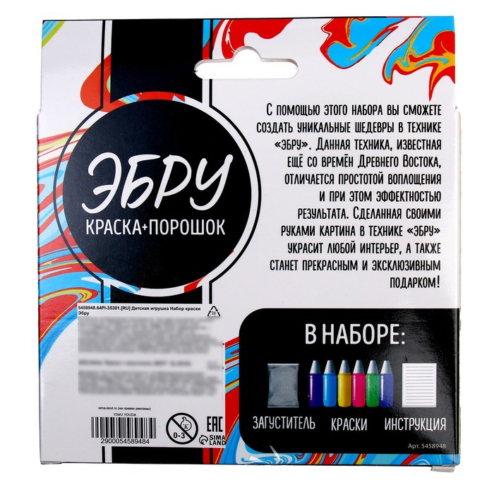 Набор для рисования эбру: краски 6 цв по 6 мл, 10 листов бумаги, загуститель 10 г, инструменты, поддон