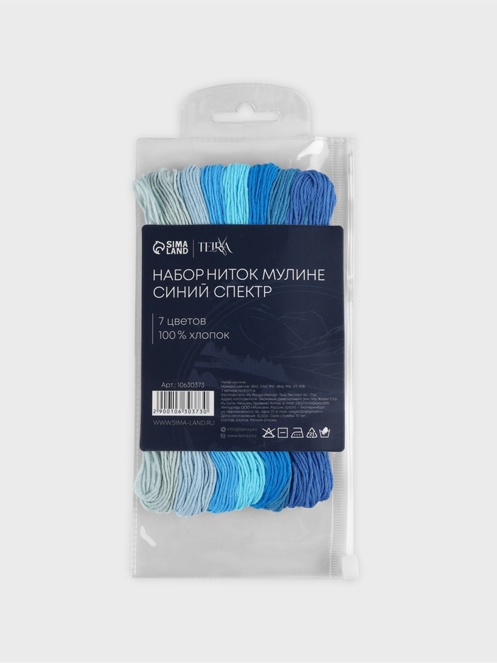 Набор ниток мулине хлопок 8±1м (наб 7шт цена за наб) cпектр синий TR