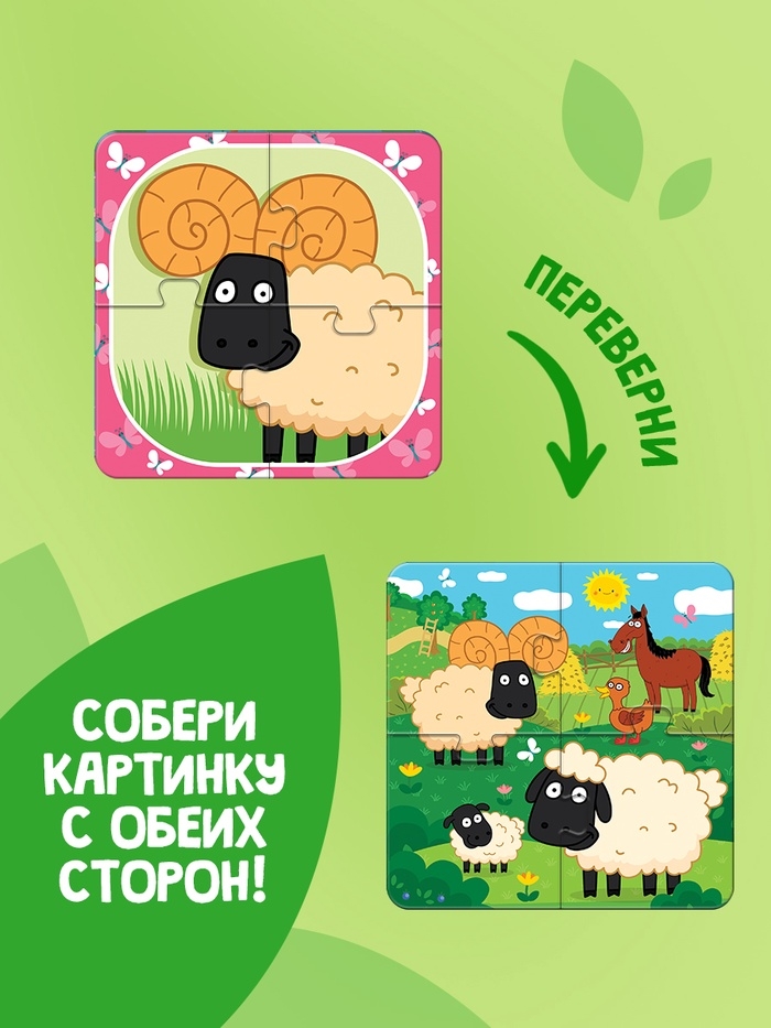 Пазлы 4 в 1, двусторонние "Друзья Синего трактора"