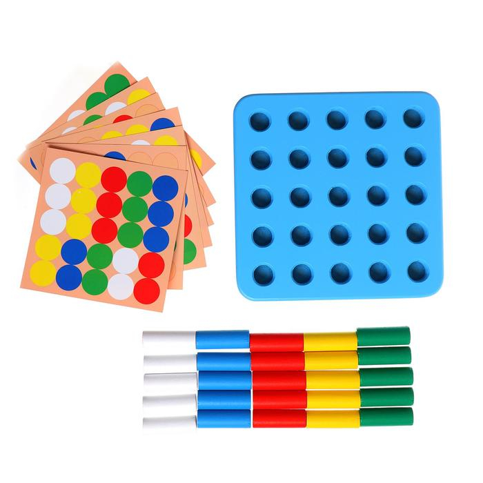 - Задача ребёнка — правильно повторить схему, расставив столбики на поле и не перепутав их количество, цвет и место положения.