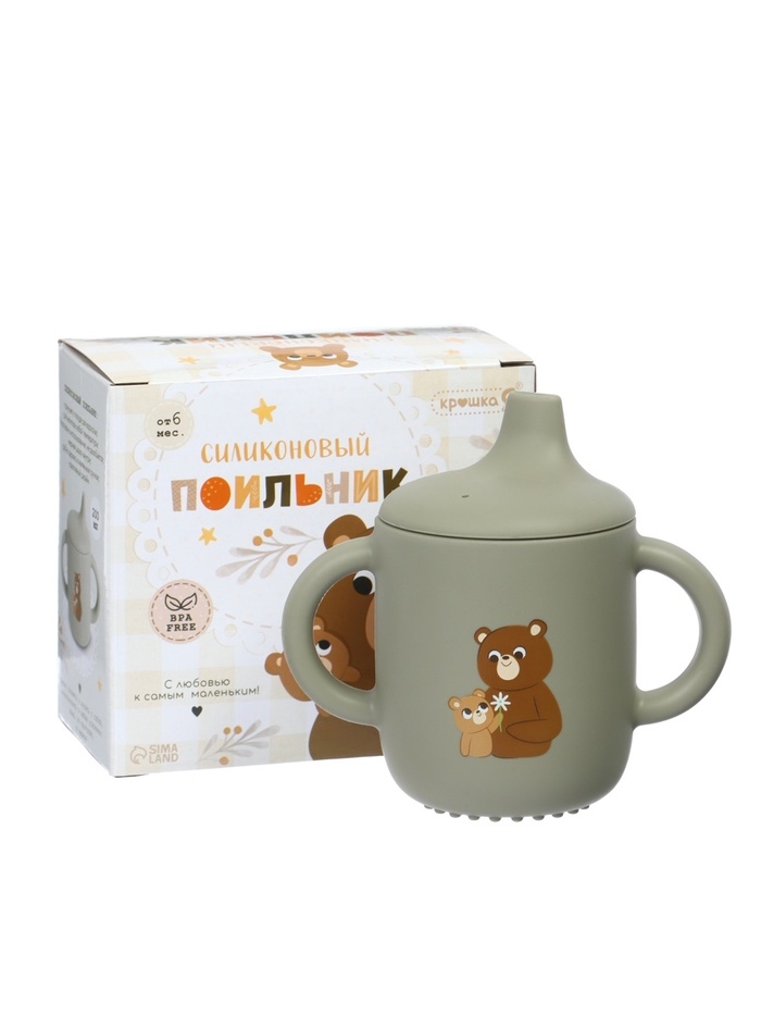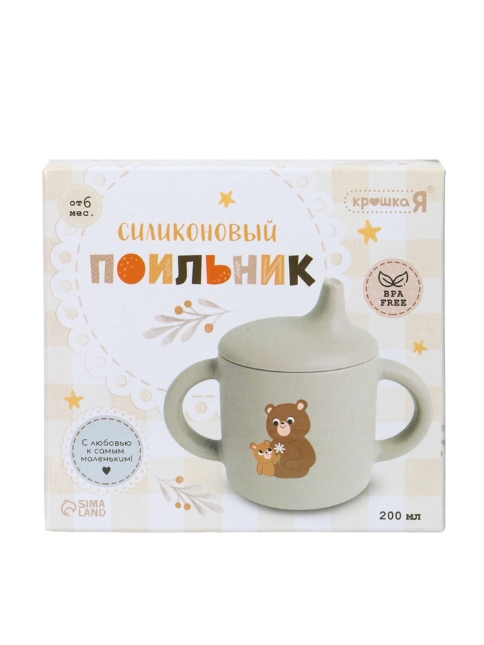 Крошка я, силиконовый поильник, серия мишка, серый SL-07273