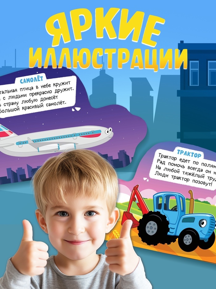 Книжка-игрушка с колёсами "Такой разный транспорт", 10 стр., Синий трактор
