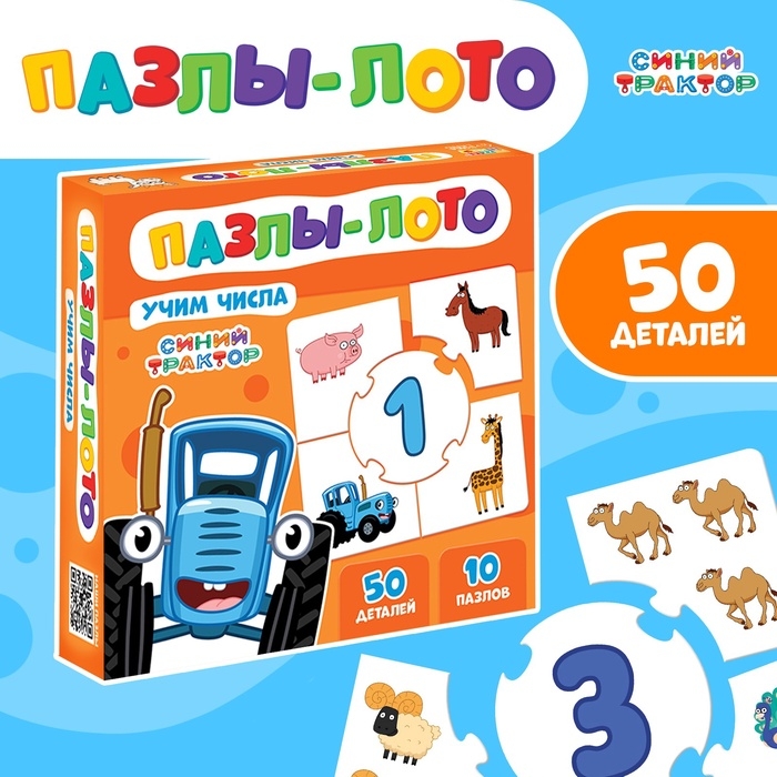 Пазлы-лото "Учим числа с Синим трактором", 10 пазлов