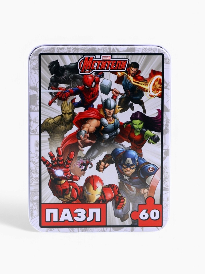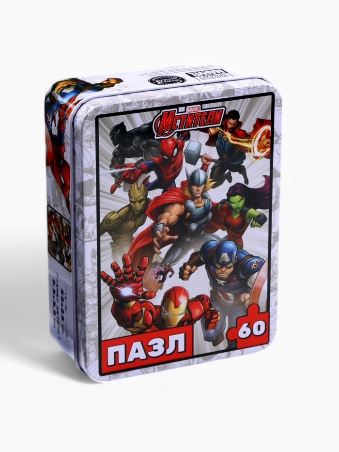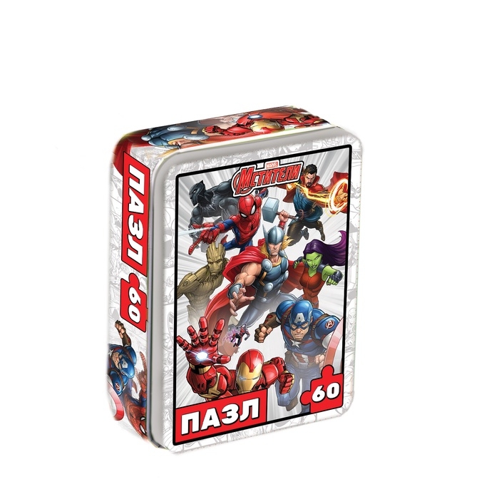 Пазл в металлической коробке "Мстители", 60 деталей