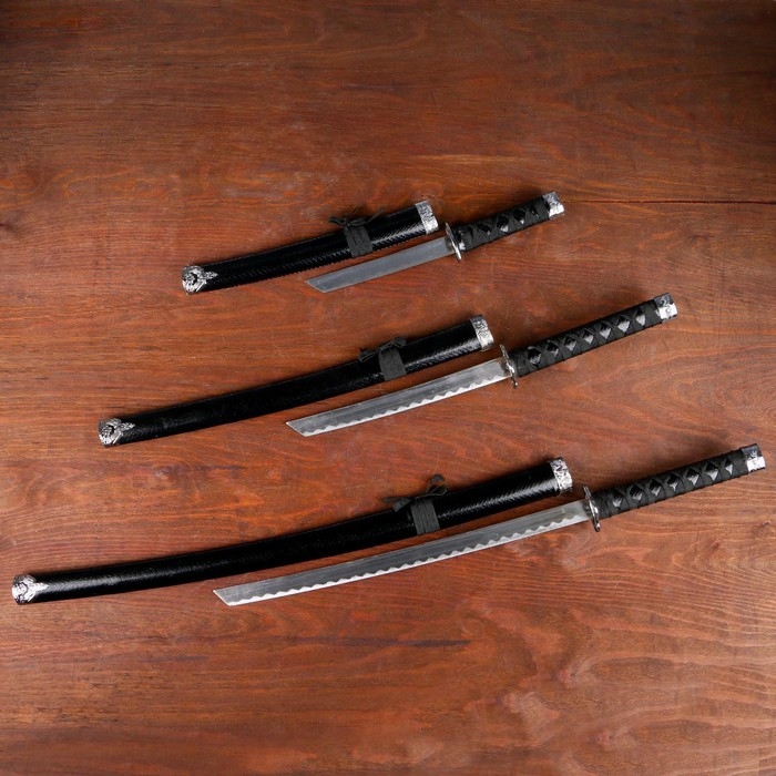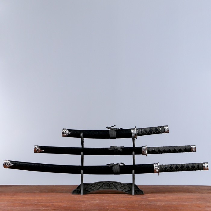 Сув. изделие катаны 3в1 на подставке, ножны кожзам, рептилия черная 47/70/89см