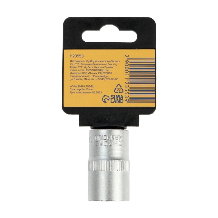 Головка торцевая шестигранная ТУНДРА, под квадрат 1/2", 10 мм, CrV