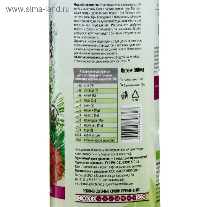 Органическое удобрение Биогумус "Садовые рецепты" для хвойных культур, 0,5 л