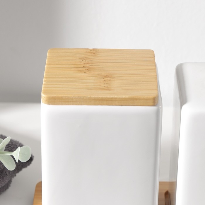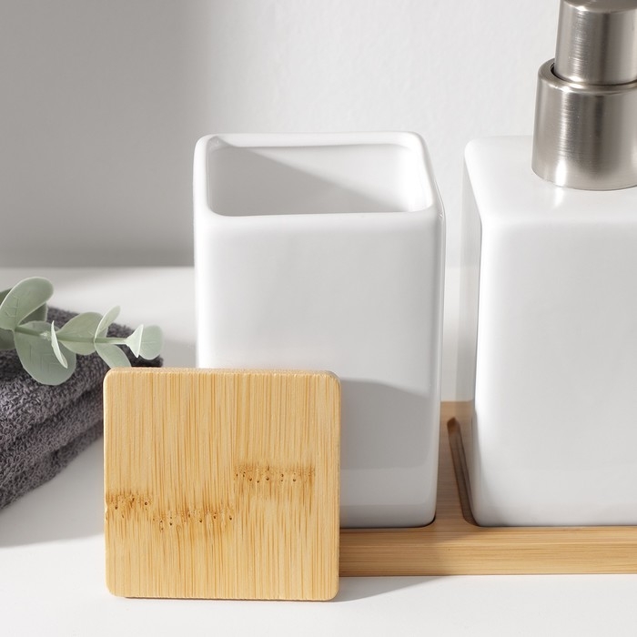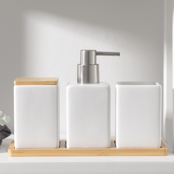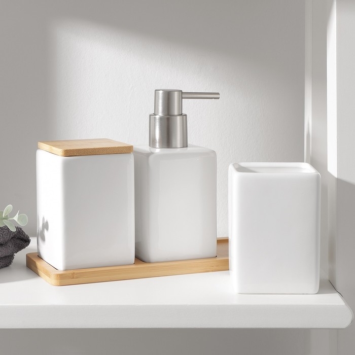 Набор аксессуаров для ванной комнаты SAVANNA Square, 4 предмета (дозатор для мыла, 2 стакана, подставка), цвет белый